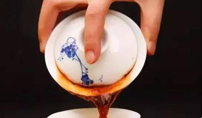 抓碗法:用的人不是很多,主要因为整个手抓住盖碗,还是比较烫手的。男性使用抓碗法的比较多。这种拿法的要点就是先调整好盖子开口大小,拇指按住盖钮,其他手指贴住盖碗底部的圈足,一只手掌抓住盖碗,盖子的方向朝向自己,碗底背对自己,盖碗垂直过来,即可出汤。抓碗法方便操作,一手即可掌握,对习惯用这种方法的人来说,实在是豪迈、大气。